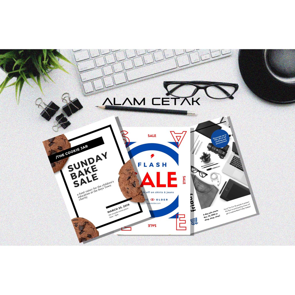 Size flyer dari size a6 hingga size a5.